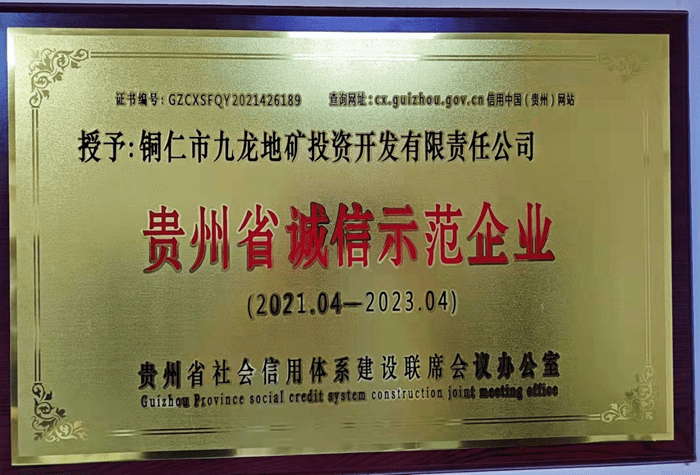 9月1日,銅仁市九龍地礦投資開(kāi)發(fā)有限公司憑借誠實(shí)守信、文明經(jīng)商、努力提高產(chǎn)品質(zhì)量和服務(wù)水平,榮獲“第三屆貴州省誠信示范企業(yè)”稱(chēng)號。此次評選由貴州省發(fā)展和改革委員會(huì )主辦,貴州省社會(huì )信用體系建設聯(lián)席會(huì )議辦公……