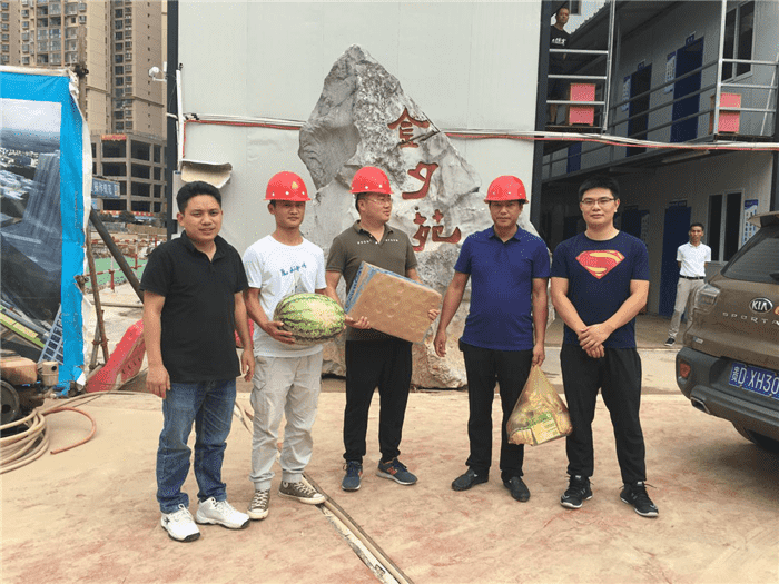 為切實(shí)維護高溫期間職工健康權益,有效防控高溫中暑和各類(lèi)安全事故發(fā)生,2019年8月29日,受九龍地礦公司董事長(cháng)于大鵬同志委托,市九龍地礦公司副總經(jīng)理、工會(huì )主席余慶、副總經(jīng)理余連書(shū)同志一行深入項目一線(xiàn)現場(chǎng),至頤年苑……